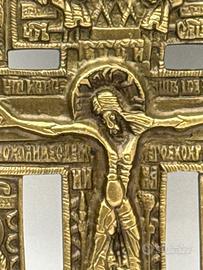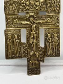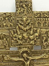 Importante crocifisso in bronzo tutto lavorato a mano della seconda metà dell’800, proveniente Russia centrale. Spedizione con subito.