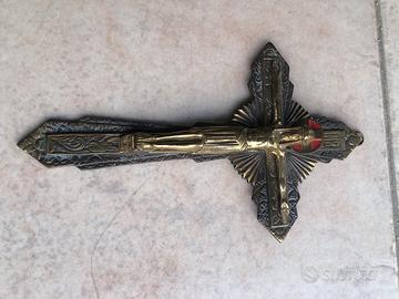 Antico crocifisso a croce di Gesù, crocifisso a croce di Gesù in ottone pezzo raro , Alto 30 cm largo 18 cm
