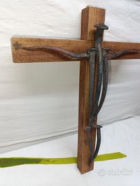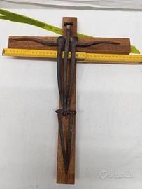 Crocifisso realizzato a mano con vecchi chiodi antichi, su base in legno , misure in foto.