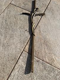 Crocifisso in ottone stilizzato, misura 57 altezza, larghezza 19 cm. Spessore 1-1,5 cm.
