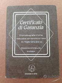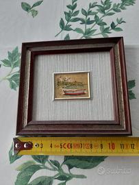 Cromolitografia d'arte realizzata con torchio a mano su foglia d' oro 23 carati. Barca in Liguria