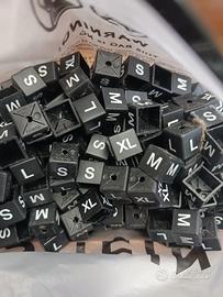 **Cubetti segnataglia per abbigliamento – lotto** Pratici cubetti in plastica nera con indicazione taglia (S, M, L, XL) per appendiabiti. Ideali per negozi, mercatini o venditori. Ottime condizioni. Lotto. Non sono di Shein ma vintage 2008. Ottima qualità, li ho solo riposto in quella busta.