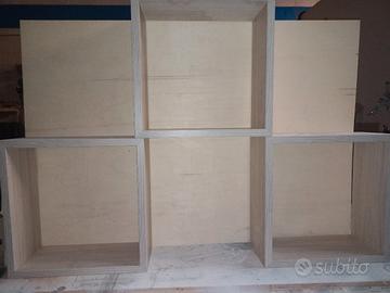 cubi in laminato effetto legno predisposti per essere appesi