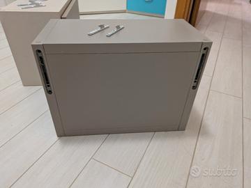Vendo coppia di cubi da parete di largh. 48cm, prof. 26cm e altezza 35cm, di colore grigio-tortora. Chiusura magnetica sportelli. Comprese piastre per montaggio a parete. Non difetti evidenti. Ottime condizioni. No spedizione. Ritiro presso Porto Fuori, Ravenna