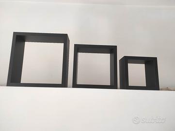 mensole cubo tre grandezze diverse (25-20-15cm) da appoggiare o appendere, per diverse configurazioni creative, mai utilizzate