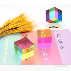 Cubo Prisma Magico in Cristallo 40x40mm, ideale per creare affascinanti effetti arcobaleno. Perfetto per chi ama la fotografia creativa: aggiungi giochi di luce unici e colorati ai tuoi scatti! Ottimo anche come decorazione per la casa o l'ufficio, dona un tocco di eleganza e modernità agli ambienti.