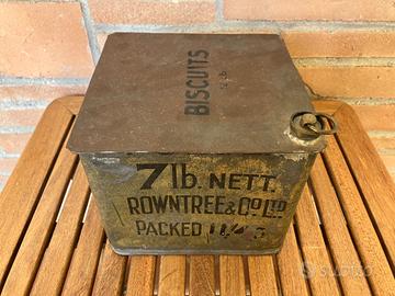 (scatola, contenitore, latta, ferro, vintage, biscotti, dolci, antiquariato, mobile)