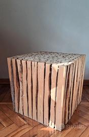 Cubo 40x40x40 cm realizzato con tronchi di legno in buone condizioni. Adatto sia come tavolino da caffè che come conplemento per il divano (es. poggia piedi), o anche come comedian.