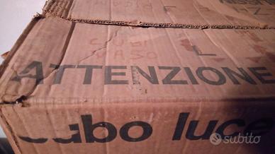 Cubo Luce originale anni '70 della Cini & Nils, versione da terra, funzionante, con griglie di ricambio + 3 cubi addizionali da vaso (con numerosi appositi mezzi coperchi come da foto sfuocata, pàrdon), compreso scatola originale. Uno dei vasi aggiuntivi è leggermente ingiallito, un altro ha una piccola scheggiatura. Il Cubo Luce per lampada è in buone condizioni.