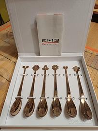 Cucchiaini caffè in acciaio 18.10 set 6 pezzi ROSE' brunito oro lucido.