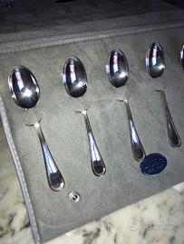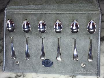 Cucchiaini da caffè argento 800/1000 stile inglese, completi di custodia in velluto, mai usati