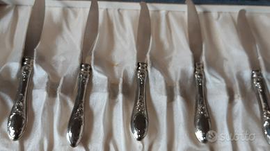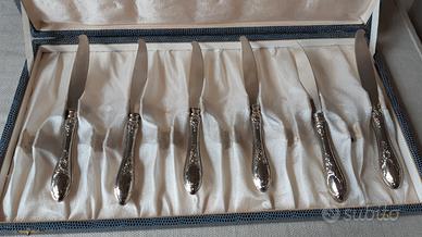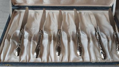 bellissimo set di 6 cucchiaini in alpacca prodotti negli anni 50 a Firenze come si può vedere dalle aste che sono decorate con ghirlande di frutta, putti, scudo mediceo e animali. nella loro confezione originale di 33x18cm. per intenditori.