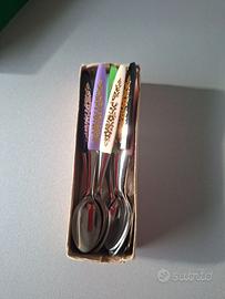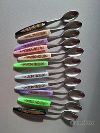 Vendo Set Vintage Italia "Rostfrei" 10 Cucchiaini piccoli Acciaio Manico in plastica colorata, nuovi, mai utilizzati.