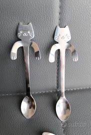 Graziosissimi cucchiaini in acciaio inox. La presa ha raffigurato un gattino, che oltre ad essere carino ha anche una funzione pratica: con le zampine si può appoggiare sull'orlo della tazza, senza che vada girovagando. Il servizio è composto da quattro pezzi, ancora imballati nella confezione originale.