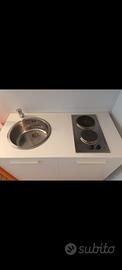 Cucina compatta completa, ideale per monolocali, taverne o piccoli appartamenti.