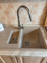 Vendo per cambio arredamento cucina usata ma in buonissime condizioni No forno no lavastoviglie da 45cm , compreso nella vendita piano cottura Franke come in foto e frigo con celletta freezer. Lunghezza 2.80 mt profondità 60 cm altezza 2.40 mt. Legno Color rovere chiaro . Possibilita di venire a vederla. Smontaggio e trasporto a carico acquirente. Solo interessati