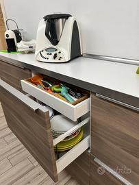 Vendesi parte della cucina in foto per una linearità tale di 2 metri. Sono in vendita gli elettrodomestici come in foto (piano cottura, forno, cappa, lavastoviglie) e strutture: per lavastoviglie ad incasso 60 cm; struttura sotto piano cottura (due cassettoni più cassetto interno portaposate 80 cm), colonna forno (zona incasso forno piu due cassettoni 60 cm), piano lavoro da tagliare (al momento è di 280 cm, necessari 140 cm). Linea metod ikea. La cucina ha 10 anni, usata ma in buone condizioni. È possibile trattare per soli gli elettrodomestici. Ritiro e smontaggio a carico dell’acquirente.