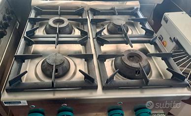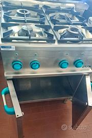 Cucina professionale 4 fuochi, marca MBM, a metano. Misura 70x70 cm, con ante sotto.