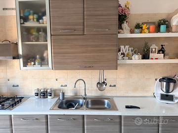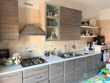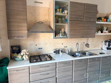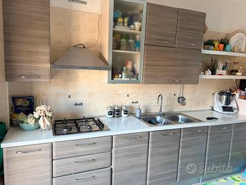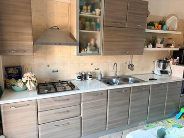 Cucina completa 5 metri lineari – moderna e funzionale Vendo cucina lineare di circa 5 metri, in ottime condizioni, dal design moderno con finitura effetto legno e piano di lavoro chiaro. Composta da: •Ampia base con cassetti e ante molto capienti •Pensili coordinati, inclusa vetrinetta con anta satinata •Piano cottura a gas 4 fuochi •Lavello doppia vasca in acciaio con miscelatore •Cappa in acciaio (da sostituire) La cucina è pratica e ben organizzata, ideale per sfruttare al massimo lo spazio. Struttura solida e materiali resistenti, perfetta per uso quotidiano. 📏 Lunghezza totale: circa 5 metri 📍 Smontaggio e trasporto a carico dell’acquirente Prezzo interessante. Contattami per maggiori informazioni o per visionarla!