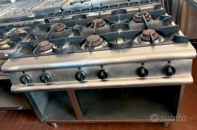 Cucina professionale 6 fuochi, a gas, misura 120x90 cm.