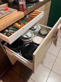 - struttura a parte con forno, frigo, banco d'appoggio e ampi cassettoni e ripiani ~ L 250cm x H1 230cm x H2 93cm x P 62xm