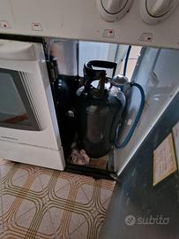 Cucina a gas Gpl, con 4 fornelli più forno in buono stato, compresa bombola Gpl. Misure 80x52 h 87 come indicato nella foto.