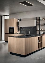CUCINA CON PENISOLA COMPLETA DI VETRINE IN VETRO FUME'