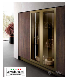Vetrine con telaio bronzo dal vetro bronzato con gola e zoccolo finitura bronzo