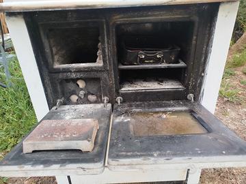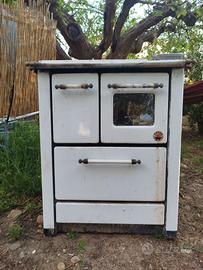 Stufa/cucina a legna Pietro Cadel. Risale agli anni 80, utilizzata solo i fine settimana. Ottimo stato di conservazione! Dimensioni cucina: 75 larghezza 90 altezza 50 profondità. Bocca focolaio: 18x15 Bocca forno: 25x25, teglie e ripiani inclusi. Spedizione possibile, consegna in Sicilia disponibile!