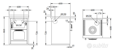 uscita fumi superiore o posteriore posizionabile a destra o a sinistra e a richiesta sul fianco