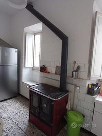 Cucina a legna con piastra in ghisa e rivestimento in maiolica color bordeaux