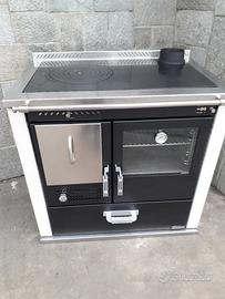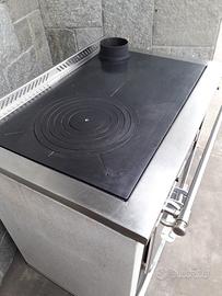 cucina a legna RIZZOLI S 90 .braciere in rifratario, forno in Acciaio inox, piastra per cucinare,casetto porta legna.