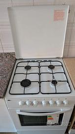 Vendo cucina a libera installazione marca Wega, modello White, in ottime condizioni. Dispone di piano cottura a 4 fuochi con pratico coperchio e forno a gas integrato con funzione grill. Ideale per piccoli spazi, seconde case o taverne grazie alle dimensioni compatte. Facile da pulire e pronta all'uso