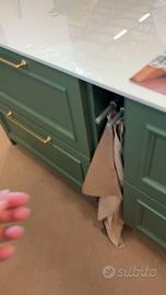 VENDO PER TRASLOCO QUESTA CUCINA COMPLETAMENTE ARIGIANALE IN LEGNO DA UNA FCOLORE VERDE E' COMPRESA DI PIANO IN GRES BIACO LUCIDO DA 1 CM E SENZA ELETTRODOMESTICI - NIENTE TAVOLO NE SGABELLI CUCINA ANGOLARE 350X305 (LATO LAVELLO) ISOLA 191X116