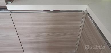 Cucina ad angolo Vendo cucina ad angolo moderna in ottime condizioni Misure: 3,30 x 1,80 m – h 2,40 Colori: basi e colonna legno olmo naturale, pensili bianco lucido Top: laminato bianco ruvido sp. 4 cm Maniglie: a gola acciaio lucido Zoccolino: color allumonio Composizione: Colonna frigo combinato Base angolo con ripiano Carrello porta bottiglie Base sottolavello Lavastoviglie Piano cottura con forno Base con 2 cassetti + 1 cassettone Pensili con 2 ripiani interni Pensile con scolapiatti integrato Lavello inox 50x40 cm con gocciolatoio Cappa Elica in acciaio (aspirante/filtrante) Smontaggio e ritiro a carico dell’acquirente 💰 Prezzo: 2.800 € trattabili