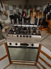 vendo cucina come da immagini , lunghezza circa 6 metri compreso cappa ad angolo , piano cottura a gas , forno a gas , lavello senza erogatore , mensole , pensili. Le porte dei mobili hanno il pannello reversibile di colore azzurro/verde all'interno. ha il vano per la lavastoviglie ( esclusa ) e sopra il lavello l'apposito spazio per asciugare i piatti.