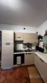 Vendo cucina angolare usata in buono stato, colore rovere/effetto legno chiaro, completa di basi e pensili con ottima capacità contenitiva.