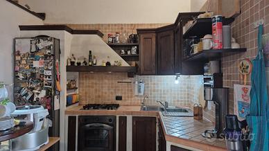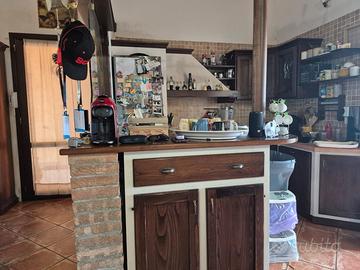 Cucina ad angolo 2.80m x 2.20m, ante in legno Castagno.