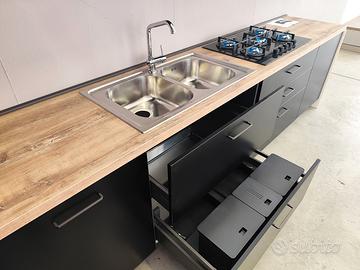 Tutte le cerniere sono della Blum e sono rallentate; nei cassetti e cestoni sono presenti sponde in metallo!