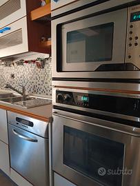 Cucina Snaidero in ottime condizioni con penisola, di m 6, con doppio lavello, elettrodomestici Whirlpool, Rex e AEG, tutti funzionanti e poco usati, frigo, forno, microonde.