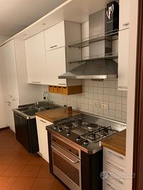 Vendo cucina Aiko. E’ in laminato bianco. Nonostante l’età’ conserva la sua originalità e il laminato e’ perfetto in quanto un laminato termoformato oggi non più realizzato. Necessità di qualche piccolo intervento alla pulsantiera della cappa faber in acciaio, alle accensioni del gas e una leggera levigata ad un top. I top sono in legno massello di faggio. Accessori in acciaio inox. La cucina e’ disposta in linea lunga 395 cm ed altro mobile largo 120 cm. Nel prezzo non e’ compresa la lavastoviglie. Smontaggio e trasporto a cura dell’acquirente.
