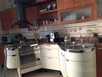 vendo 4 metri di cucina lineare in legno ciliegio dell'Aiko con top in marmo rosso Verona e con tavolo in vetro e legno e 4 sedie con piano cottura e lavabo della Foster e forno Whirpool 4500 euro