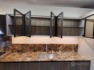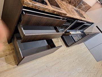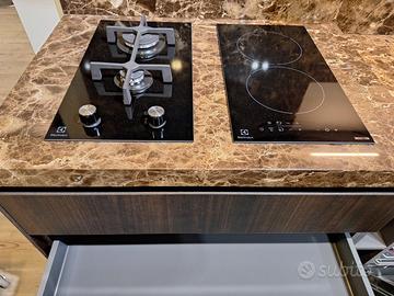 Cucina di alta qualità completa di Elettrodomesti , piano in marmo , tavolo , colonna ad angolo porta lavatrice , colonna con piano in acciaio e cassetto , due piani cottura gas e induzione, pronta consegna 8900 €