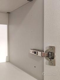 Le ante sono tutte bordate ABS da 1 mm ed hanno la maniglia alluminio che riprende lo zoccolo da 12 cm e l'alzatina da 1x2 cm.