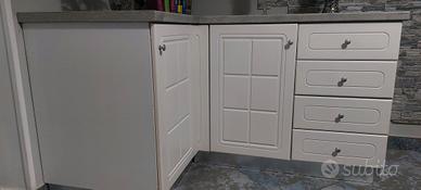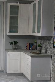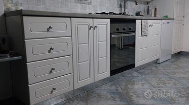 cucina americana con tutti gli elettrodomestici inclusi dicui forno ad incasso lavastoviglie incassata esterna frigorifero frigo freezer incassato piano cottura 4 fuochi lavello doppia vasca e rubinetto con doccina, gruppo cucina misura 375x60 parte inferiore 375x30 angolo 150 parte lunga 110 parte corta prezzo trattabile