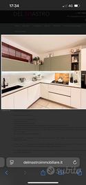 Vendesi cucina angolare realizzata su misura (creo kitchen) bianca lucida e verde salvia opaco. Lavandino sotto top nero in fragranite. Apertura sportelli con gola. Zoccolo e gole color platino. Top in dekton color marmo calacatta oro. Due colonne estraibili una grande e una piccola. Prezzo 8500€ trattabili. Smontaggio e trasporto a carico dell’acquirente. Disponibile da gennaio data precisa da accordare.