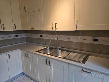 Vendesi cucina Angolare cm 250x390, pensili alti cm 98 color magnolia. unici elettrodomestici inclusi: piano cottura cm 75 whirlpool con griglie in ghisa, lavello Franke 2 vasche con piano appoggio, e frigo incasso Whirlpool . piano in okite color sale e pepe. condizioni più che buone. prezzo da concordare