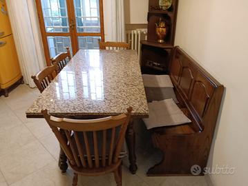 Vendo cucina/tinello angolare in ottime condizioni estetiche completa di tavolo in marmo con 4 sedie e panca. Smontaggio e trasporto a carico del acquirente. Contattatemi per qualsiasi info.