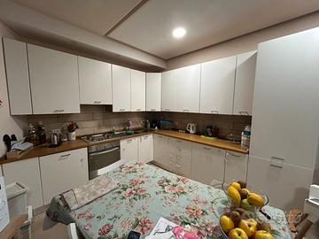 Vendo cucina componibile ad angolo in buone condizioni generali, colore bianco opaco con piano di lavoro effetto legno. La cucina è composta da: