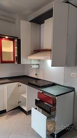 Vendo cucina angolare bianca con inserti rossi e neri come da foto. Lavello, miscelatore, cappa, faretti e piano cottura inclusi nel prezzo.